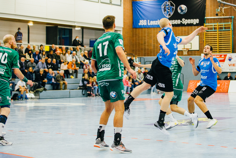Aufatmen beim TuS Spenge. Nach einer halbjährlichen Unterbrechung des Spielbetriebes in der 3. Liga gab es heute Abend die Heimspiel-Premiere der Saison 2020-2021. Und die endete mit einem 34:30 (17:13) Sieg gegen den TuS Volmetal. Die Partie war mit 290 Zuschauern ausverkauft – der TuS hatte die Abendkasse für den freien Verkauf erst gar nicht geöffnet. Unter normalen Umständen wäre der »Spenger Schuhkarton« wohl auch voll gewesen, doch so mussten die 290 Zuschauer für genügend Stimmung von der Tribüne sorgen – und das taten sie auch. Darüber hinaus hatten alle Fans, die nicht live dabei sein konnten die Möglichkeit, das Spiel bei Sportdeutschland.tv im Stream zu verfolgen.