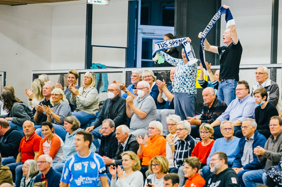 Der Beginn der zweiten Hälfte gehörte eindeutig unserem TuS. Die Mannschaft kam sehr gut aus der Halbzeitpause und nutze die ersten Minuten, um sich mit sieben Toren zum 22:15 von Volmetal abzusetzen. Der guten Stimmung auf der Tribüne konnte man entnehmen, dass die Fans die Vorentscheidung auf den ersten Heimsieg feierten. Doch dafür war es viel zu früh, denn die Gäste hatten noch lange nicht vor, sich geschlagen zu geben. Ab der 50. Minute startete Volmetal beim Stand von 32:25 noch einmal eine Aufholjagd und kam Tor um Tor heran. In den letzten fünf Minuten praktizierten die Gäste dann eine offene Manndeckung – die Folge waren einige Ballverluste auf Spenger Seite und die Hallenanzeige zeigte 33:30. Der 34:30-Treffer von unserem Neuzugang Maximilian Schüttemeyer zwei Minuten vor Schluß besiegelte dann jedoch die Niederlage des TuS Volmetal. Ein guter Start in die Saison, eine gelungene Organisation in der Sporthalle und hoffentlich mit vielen Fans im Stream an den Bildschirmen. Was will man mehr in diesen turbulenten Zeiten.