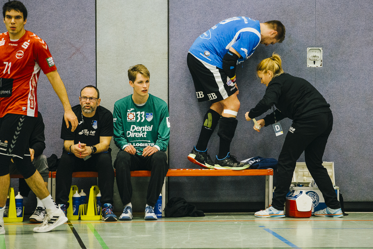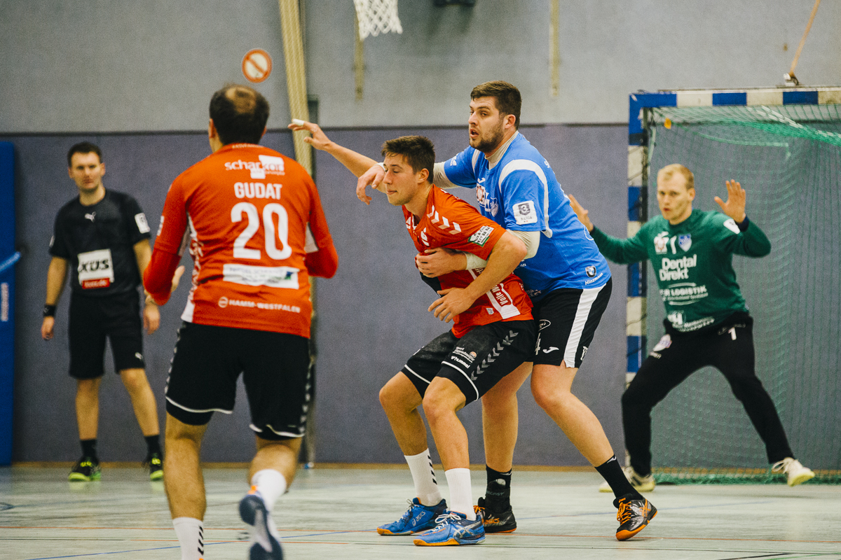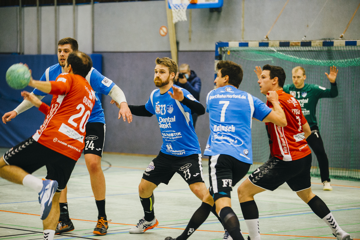 In der zweiten Halbzeit probierte der Hammer-Trainer Dirk Schmidtmeier eine andere Defensiv-Taktik: Fabian Breuer wurde in Manndeckung genommen. Die Variante zeigte in den ersten Minuten seine Wirkung. Das Team wurde kurzeitig aus dem Rhythmus gebracht. Nils van Zütphen brachte aber mit seinem fünften Tor die Truppe wieder in die Spur. Nach 40 Minuten hatte der TuS den Vorsprung auf 10 Tore ausgebaut – 17:27. Der Hammer Angriff scheiterte immer wieder an den „Hünen“ Gräfe und Tesch im Mittelblock oder an Bastian Räber. Besonders zu erwähnen ist in der zweiten Halbzeit das „Empty Net Goal“ in der 48. Minute von Bastian Räber, das Justus Aufderheide wieder gespielt hat und die beiden Tore von Youngster Joshua Kern. Joshua Kern durfte in der zweiten Halbzeit zum ersten Mal Drittliga-Luft schnuppern.