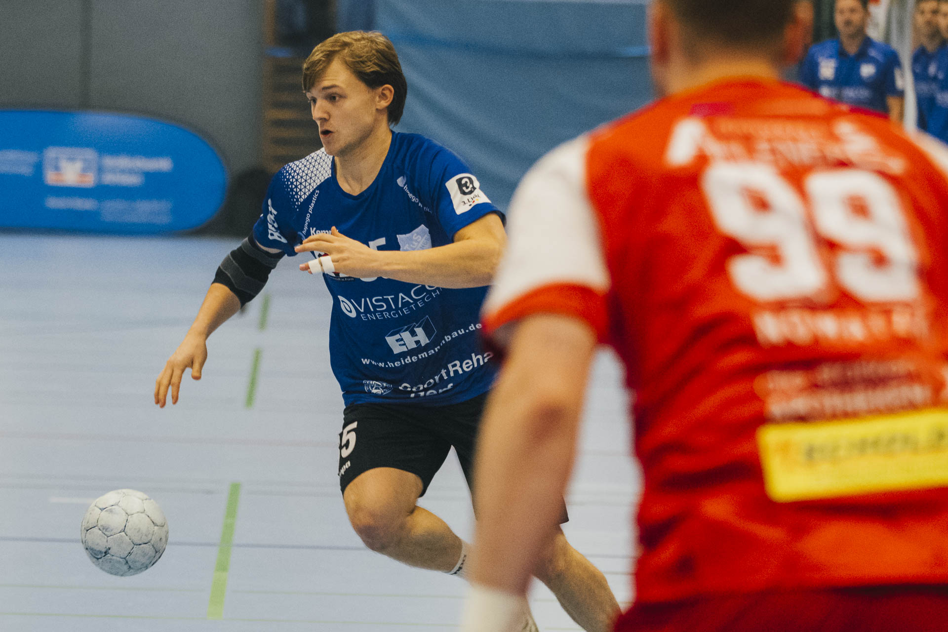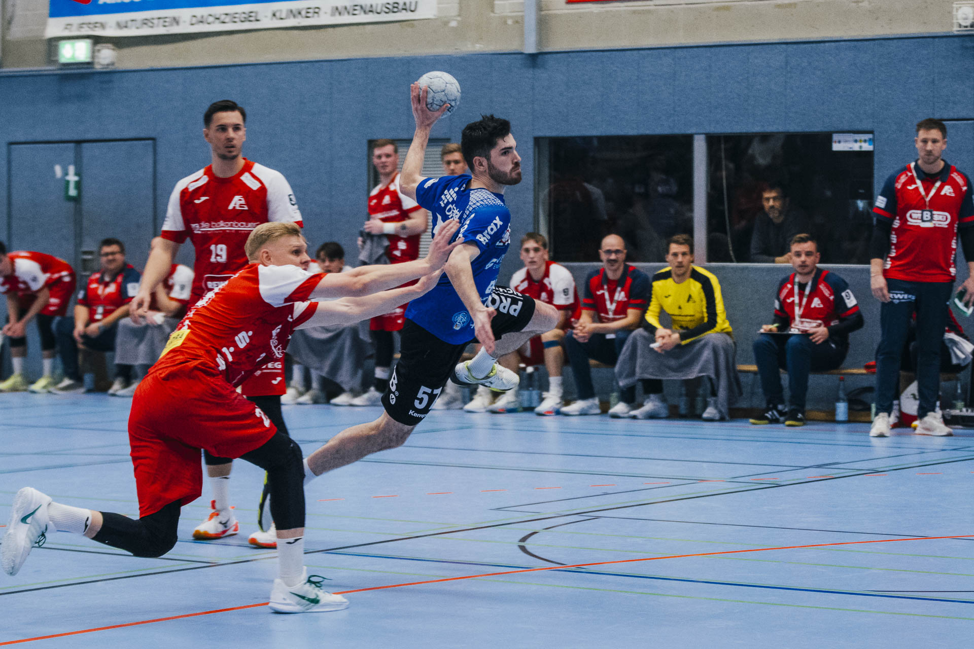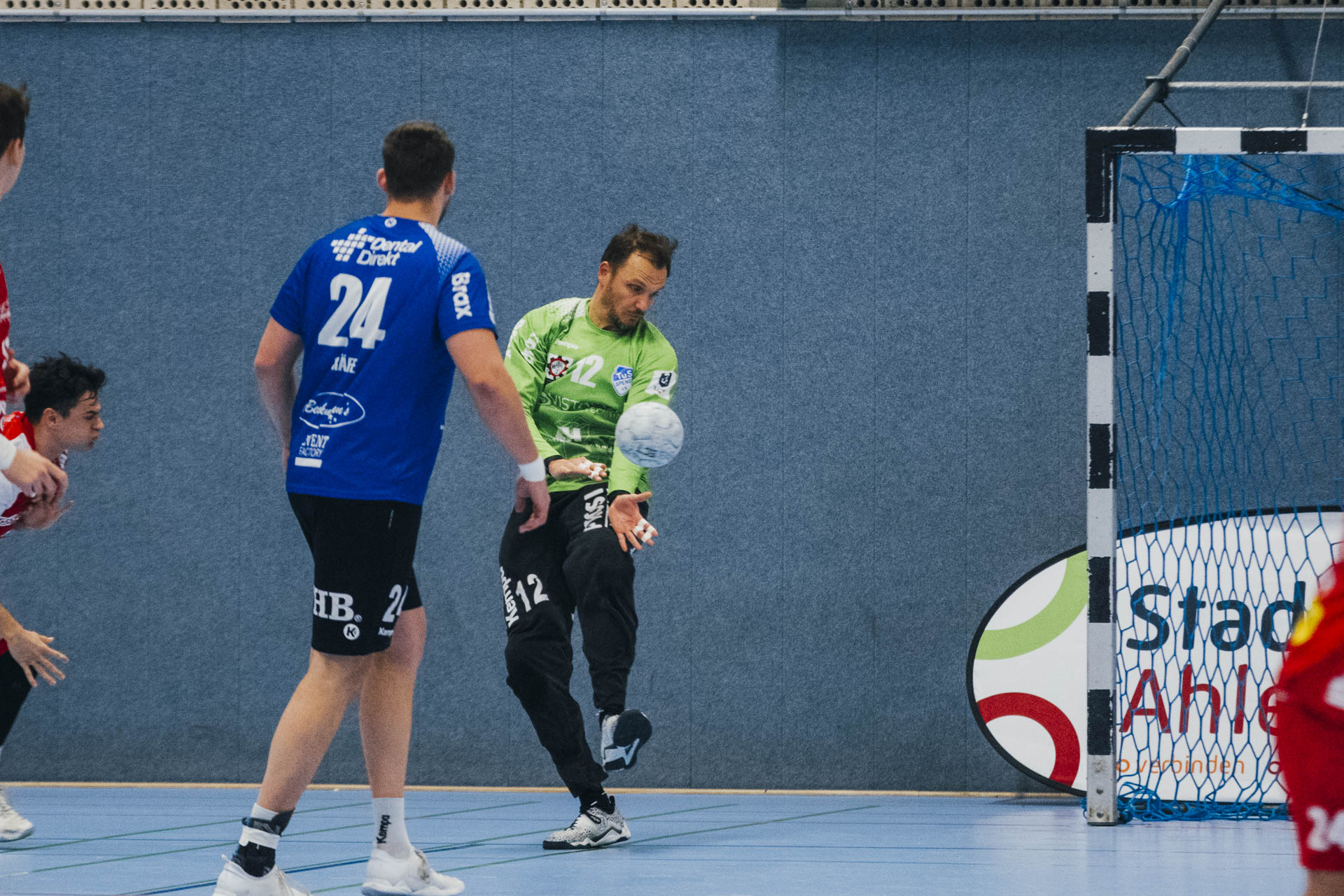 1. Halbzeit: Die Partie begann mit Anwurf für die Ahlener SG, während der TuS Spenge mit einer neuen Startformation ins Spiel ging. Unter anderem übernahm Mateusz Martyn die Position am Kreis. In den ersten fünf Minuten begegneten sich beide Teams auf Augenhöhe, ehe Spenge erstmals das Kommando übernahm. Zwischen der 5. und 8. Minute setzte der TuS mit einem 3:0-Lauf ein erstes Ausrufezeichen – Jungmann, Martyn und Kloor trafen zum 3:6 (7. Minute). In dieser Phase glänzte Bastian Rutschmann mit mehreren starken Paraden. Ahlen kam anschließend wieder besser in die Partie, profitierte von leichten Fehlern der Spenger im Aufbauspiel und glich in der 15. Minute zum 8:8 aus. Doch die Antwort des TuS folgte prompt: Mit einem weiteren 3:0-Lauf zwischen der 19. und 21. Minute setzte sich Spenge erneut ab. Maßgeblichen Anteil daran hatte eine defensive Umstellung – Gordon Gräfe agierte wie gewohnt gemeinsam mit Bjarne Schulz in der stabilen Mitteldeckung. In der Schlussphase der ersten Halbzeit wurde der TuS zunehmend dominanter. Rund drei Minuten vor der Pause starteten die Gäste den nächsten Lauf: Gräfe, Hofmann und Schulz sorgten für klare Verhältnisse. Mit einer 5-Tore-Führung ging Spenge schließlich in die Halbzeitpause – allerdings in Unterzahl, da Mathis Borgmann kurz vor dem Pausenpfiff eine Zwei-Minuten-Zeitstrafe erhielt.