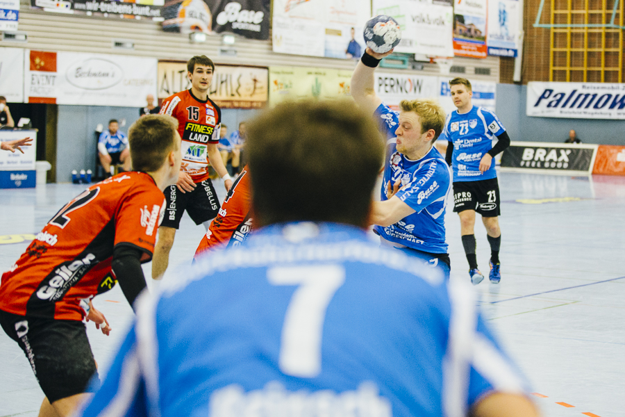 Unsere Mannschaft kam, wie schon gegen Rostock, gut ins Spiel. Nach 15 Minuten führten sie mit 9:5 Toren. Immer wieder wurde Max Schüttemeyer freigespielt der so aus dem Rückraum traf. Besonders der Wechsel zwischen Gordon Gräfe in der Mittel-Deckung und Max Schüttemeyer im Angriff klappte sehr gut. Aber auch der Rest der TuS 6:0 Deckung war in dieser Phase des Spiels sehr aufmerksam und beweglich. Das Spiel beider Teams fand entweder über die Mitte oder den Kreis statt – Torszenen über außen Fehlanzeige.