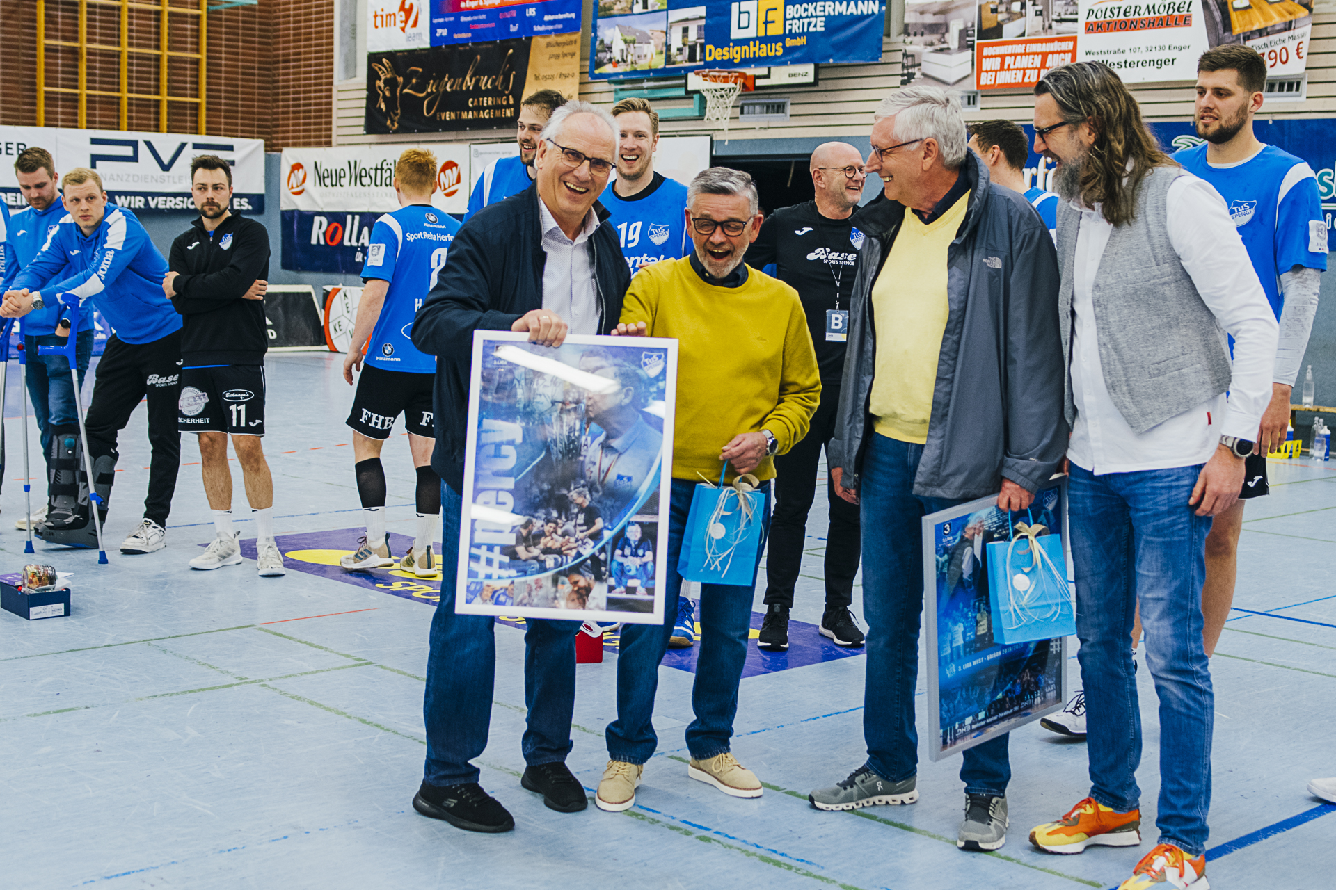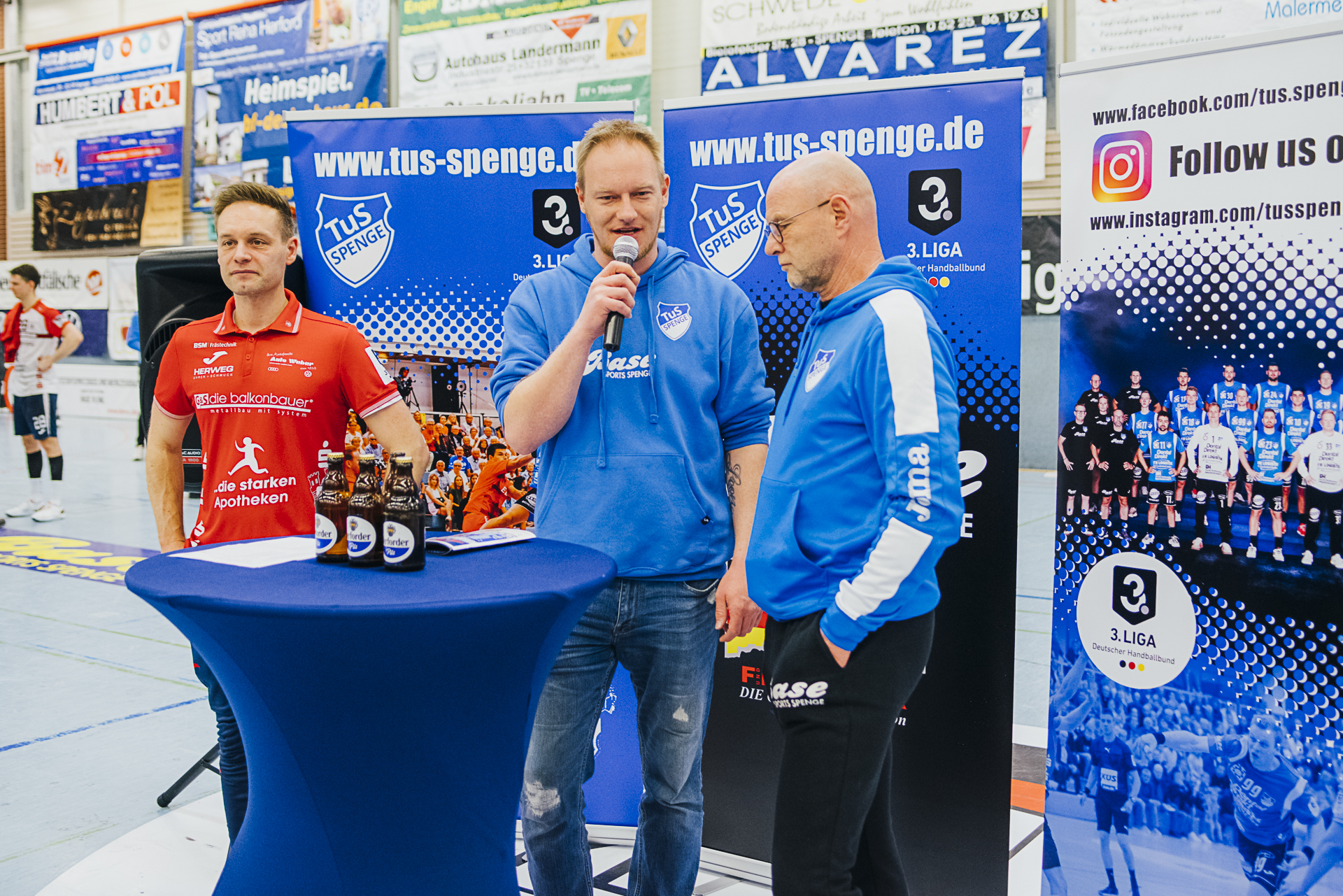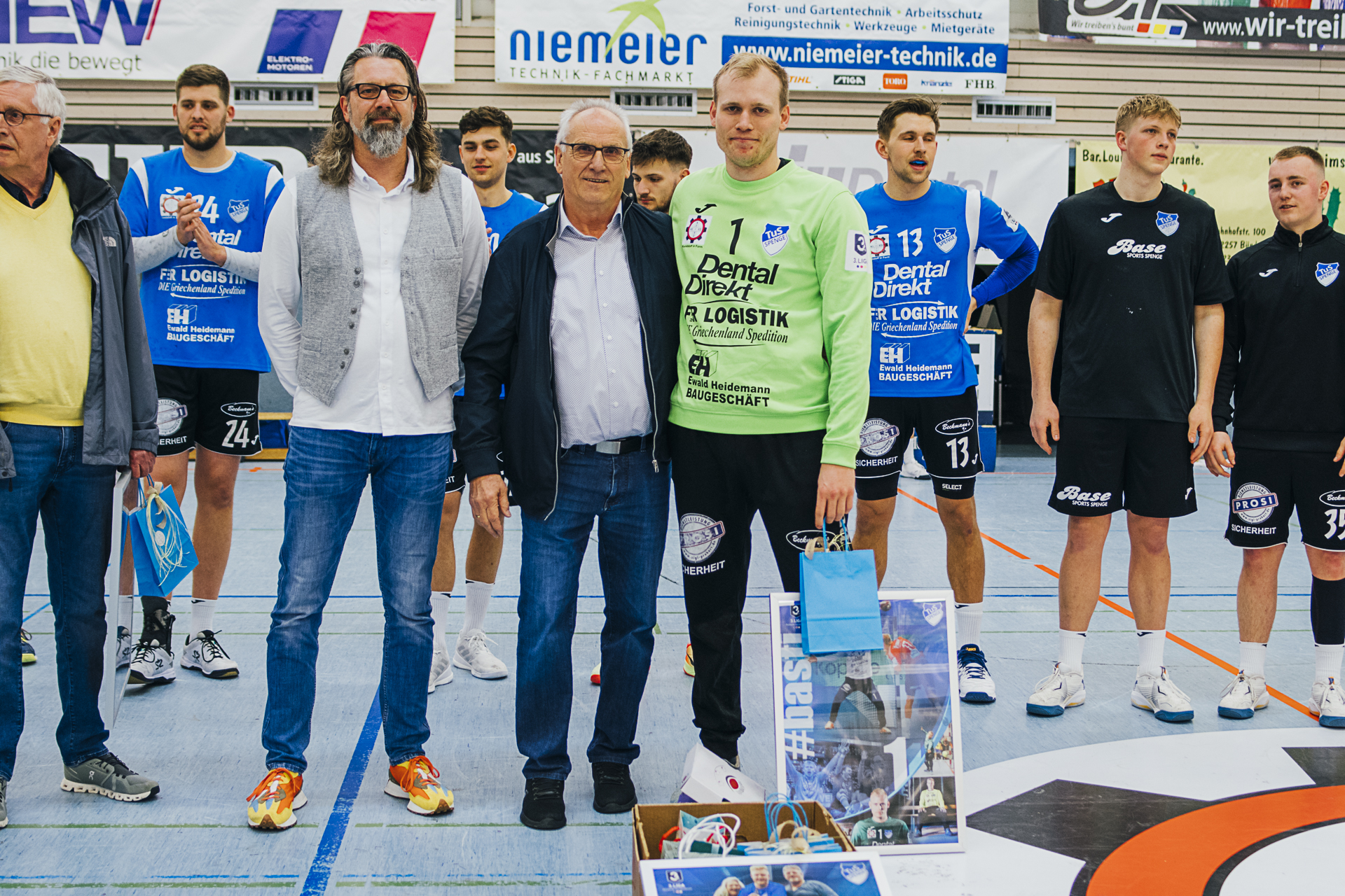 Wir sagen »Auf Wiedersehen«, »Bye bye«, »Auf bald«, »macht es gut«, »es war schön mit euch« … zu unseren langjährigen Spielern Bastian Räber, Kevin Becker, Christoph Harbert und Nils van Zütphen. Alle vier Jungs sind ganz eng mit dem Erfolg des TuS Spenge in den letzten Jahren verbunden. Und da in Spenge das Motto gilt: »Niemals geht man so ganz…«, hoffen wir, euch recht bald als Fan und Zuschauer im schönsten »Schuhkarton« der Welt wiederzusehen. Es war uns ein Fest mit euch.