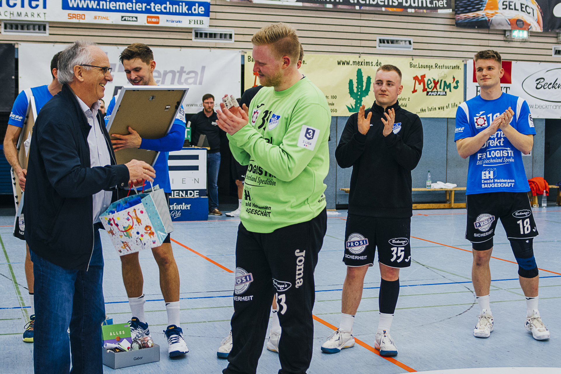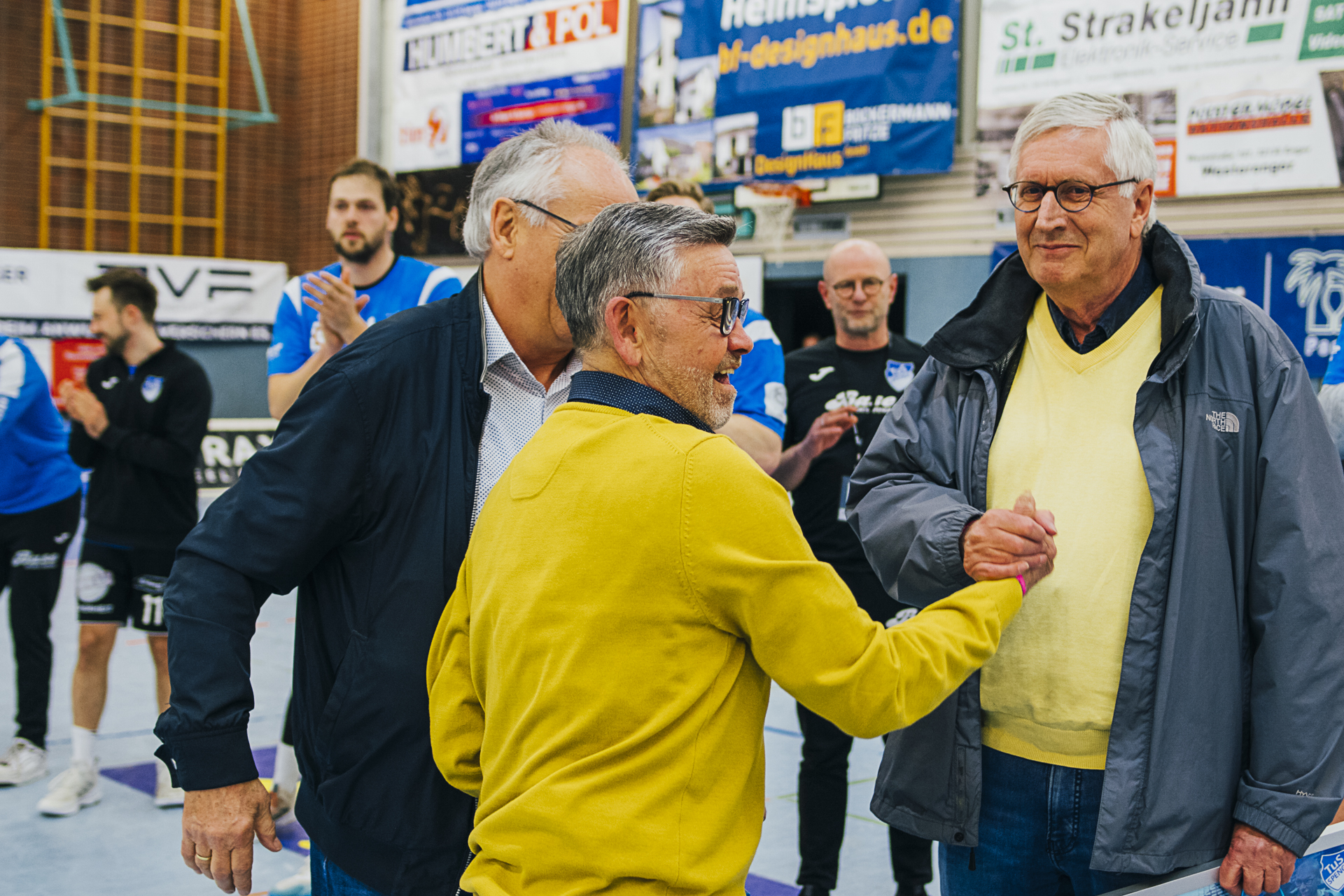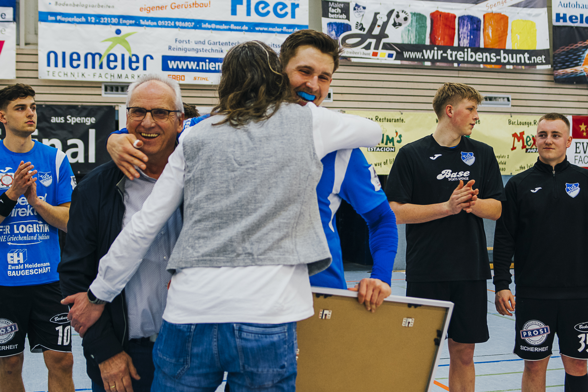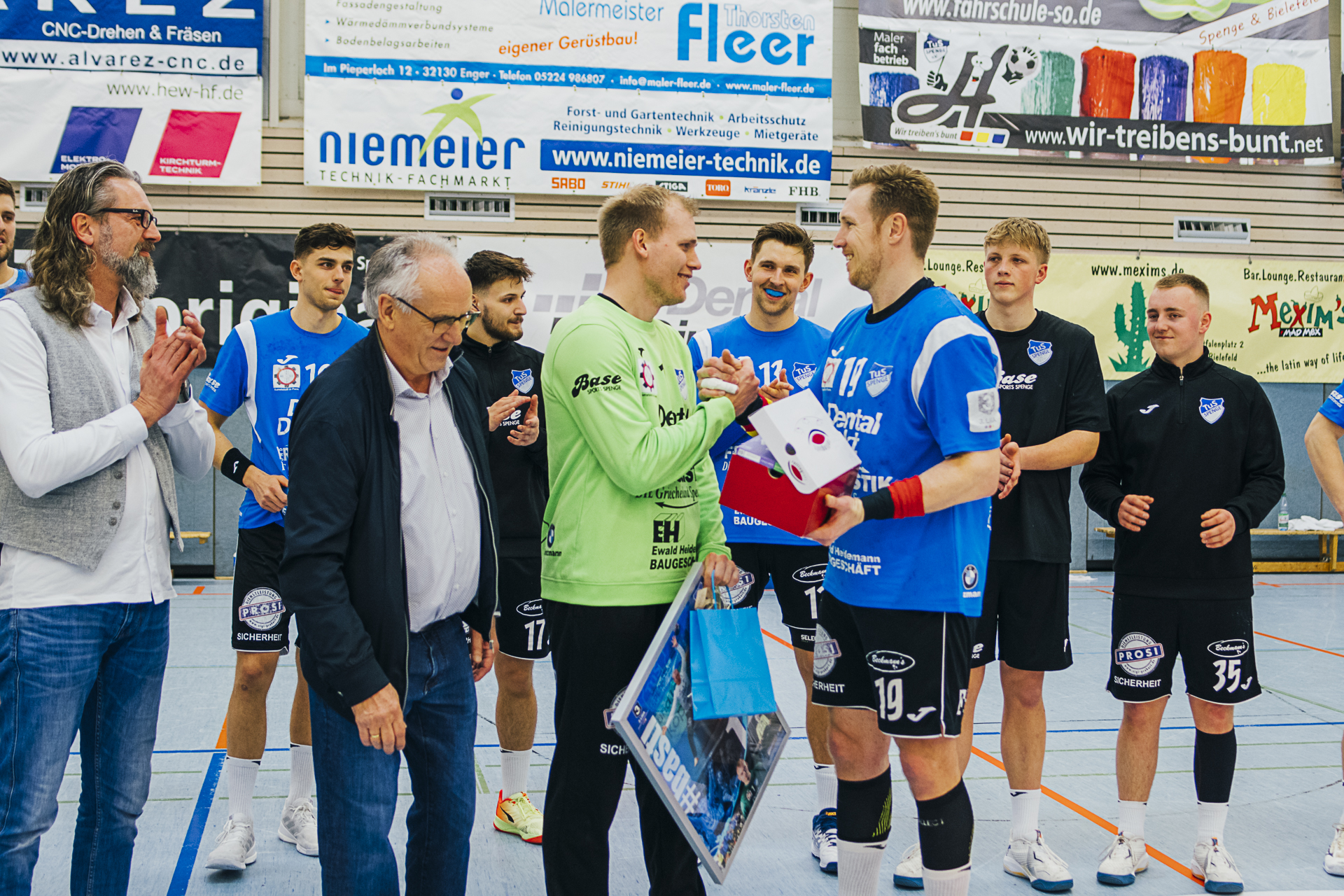 Wir sagen »Auf Wiedersehen«, »Bye bye«, »Auf bald«, »macht es gut«, »es war schön mit euch« … zu unseren langjährigen Spielern Bastian Räber, Kevin Becker, Christoph Harbert und Nils van Zütphen. Alle vier Jungs sind ganz eng mit dem Erfolg des TuS Spenge in den letzten Jahren verbunden. Und da in Spenge das Motto gilt: »Niemals geht man so ganz…«, hoffen wir, euch recht bald als Fan und Zuschauer im schönsten »Schuhkarton« der Welt wiederzusehen. Es war uns ein Fest mit euch.