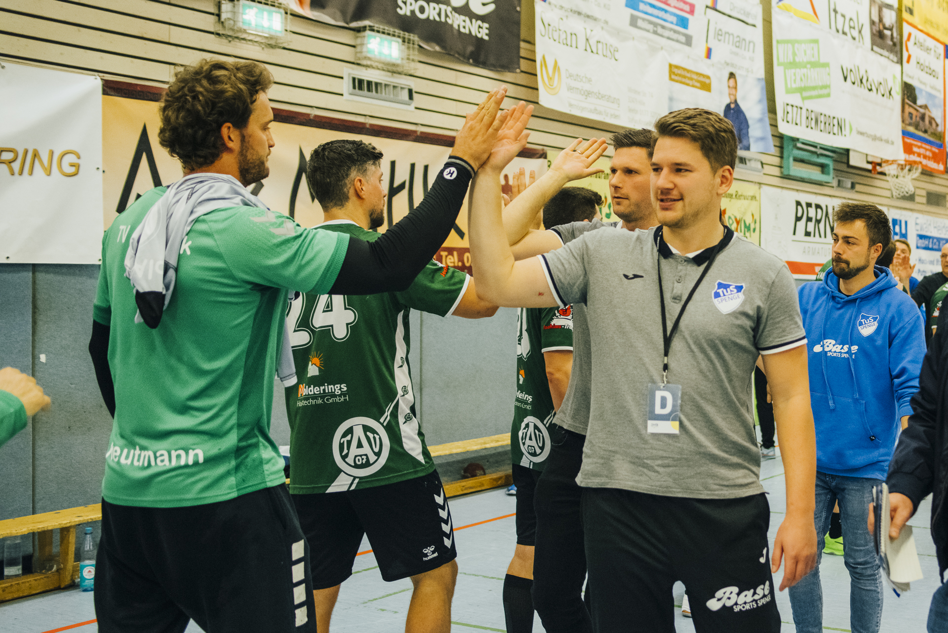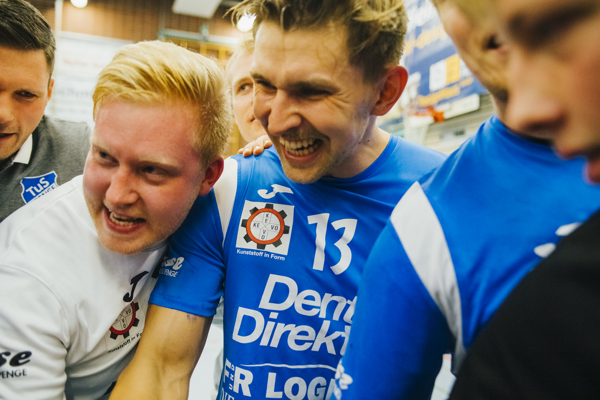 Die zweite Hälfte startete ähnlich bescheiden und unser Team verwarf sogleich den ersten Angriff. Es dauerte bis zur 39. Minute, ehe Fabian Breuer erstmal zum 14:14 ausglich. Mit dem nächsten Spenger Angriff legte er sofort nach und netzte auch zur 15:14 Führung ein. In der Folge konnte unsere Sieben den Vorsprung um ein Tor oder ein Unentschieden halten. Glücklicherweise spielte unsere Sieben in dieser Phase der Begegnung konstanter und besser auf und erzielte durch Philipp Holtmann, Olli Tesch und Sebastian Reinsch drei wichtige Tore. Der TuS setzte sich erstmals um drei Tore von Aldekerk ab – die Vorentscheidung war fünf Minuten vor dem Ende gefallen. Am Ende zog der TuS auf 26:22 durch das Tor von Vincent Hofmann davon. Ein Sieg ohne Glanz, erzielt mit einer sehr durchwachsenen Mannschaftsleistung.
