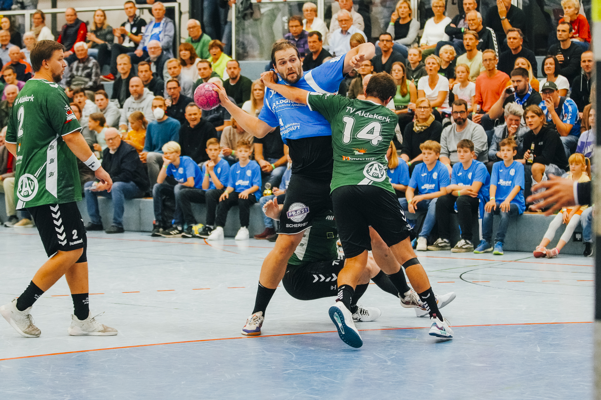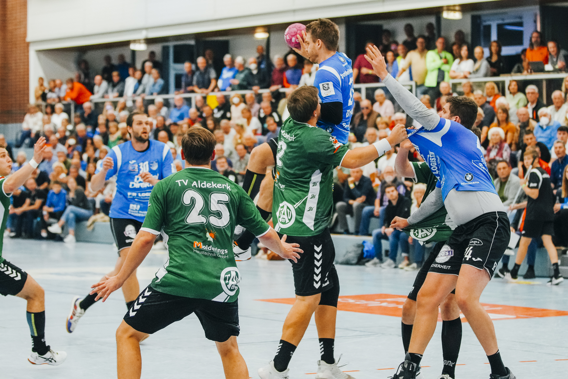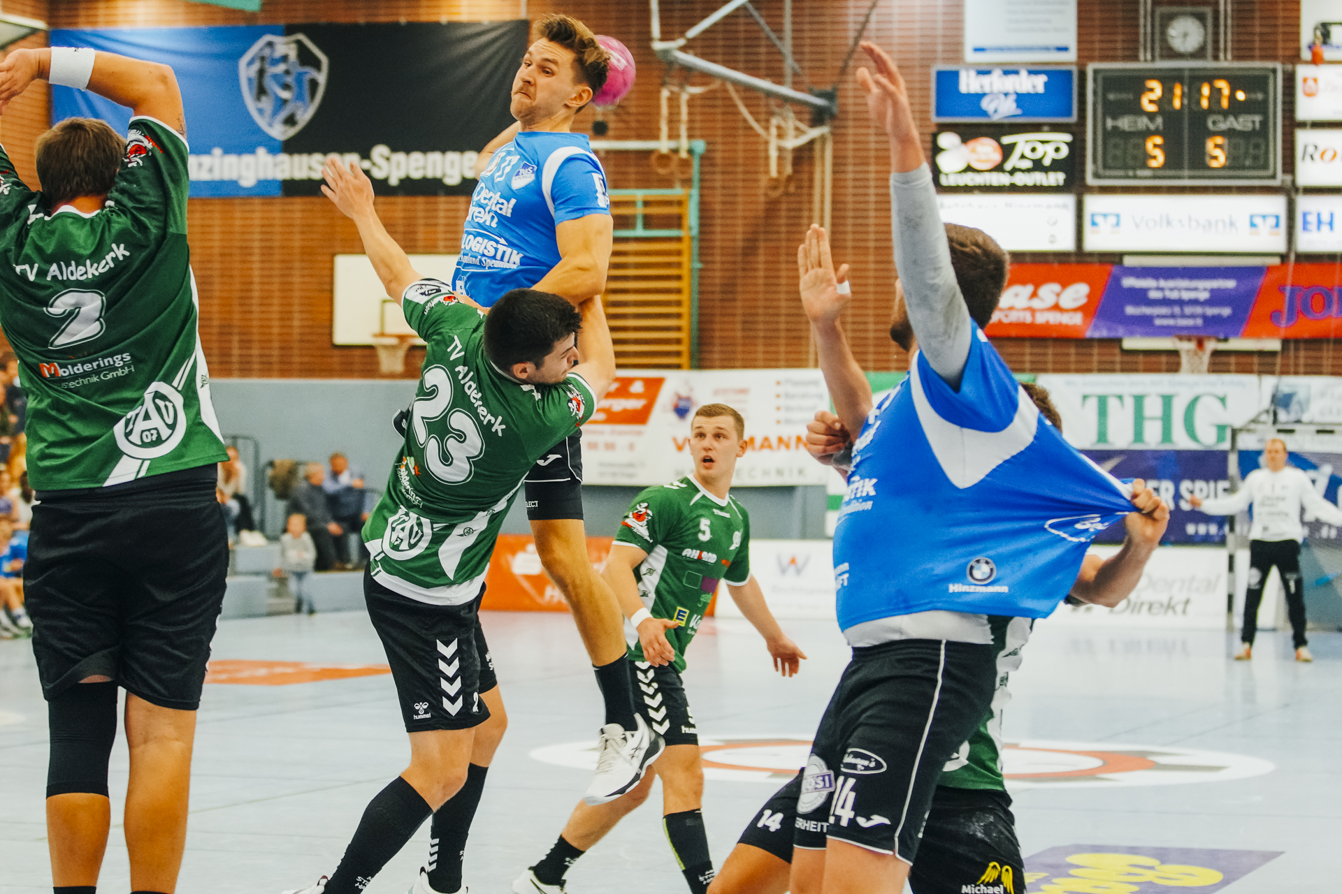 Endlich wieder ein Heimspiel – die Vorfreude war groß. Besonders, weil unsere Sieben in der letzten Woche in Longerich einen überzeugenden Auswärtssieg landete. Um es gleich vorweg zu nehmen, die Leistung der Vorwoche konnte unser Team nicht wiederholen. Am Ende siegt der TuS zwar mit 27:23 (8:10) einen Arbeitssieg – aber der Weg zu diesem Erfolg war an diesem Abend sehr steinig. Von Anfang an leistete sich unser Team eine Menge technischer Fehler und ließ gleich reihenweise beste Chancen aus. Hätten sich die Gäste aus Aldekerk nicht ähnlich viele Fehler geleistet, dann hätte der 4:3 Spielstand zur 14. Minute auch völlig anders aussehen können. Insgesamt fielen in den ersten 23 Minuten beim Stand von 7:7 nur ganze 14 Tore. Bis zur Halbzeit ergab sich nur eine magere 8:10 Führung für die Gäste – die Zuschauer in der Spenger Sporthalle hatten bis dahin keine gute Drittliga-Partie gesehen.