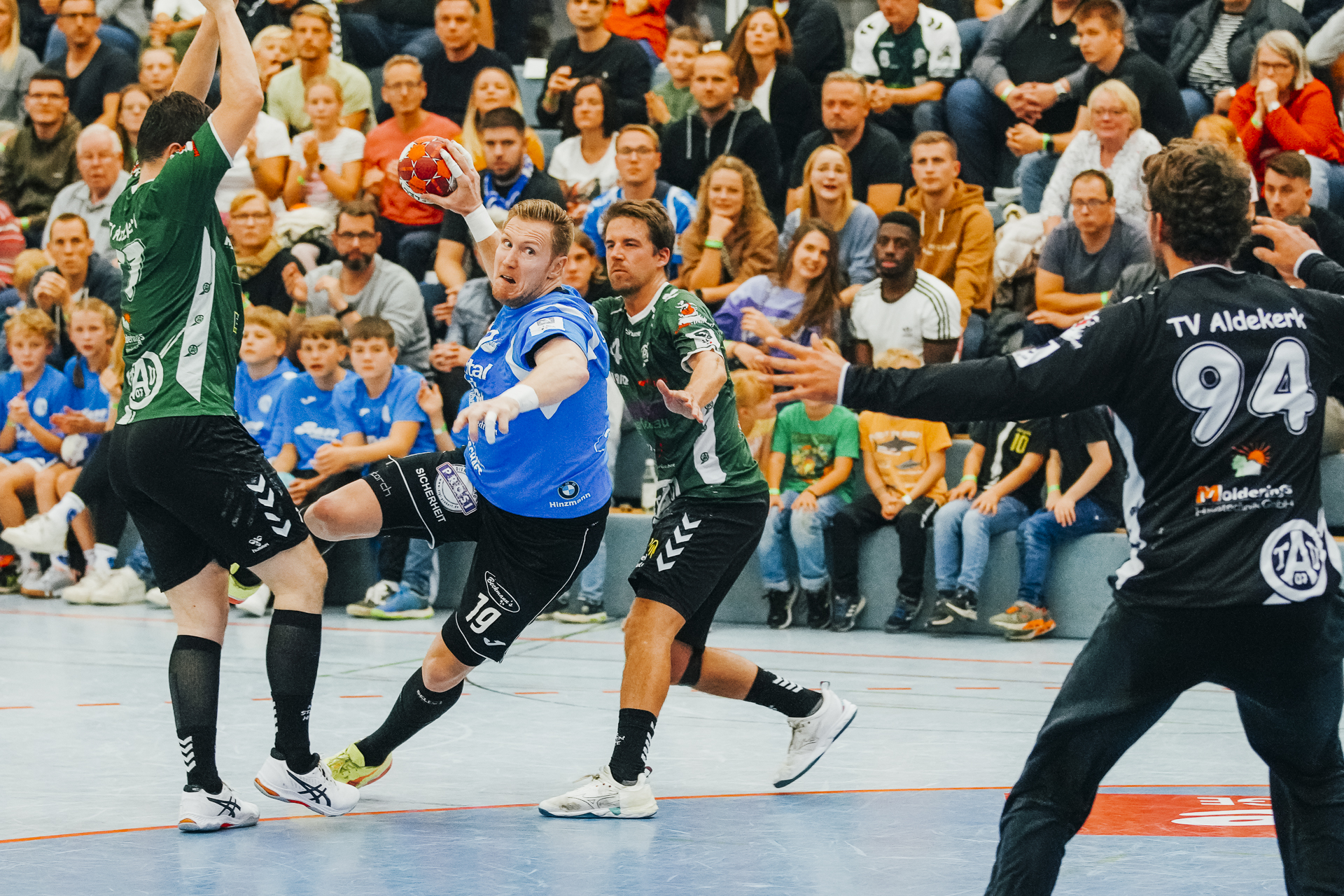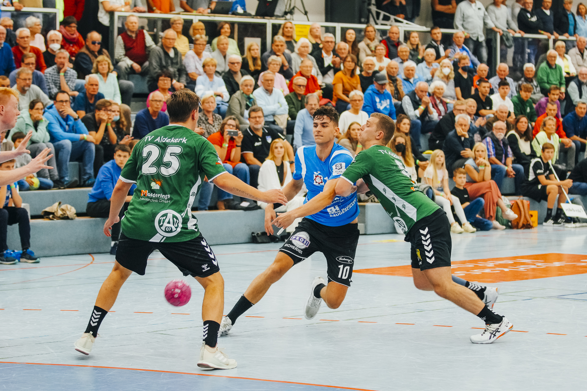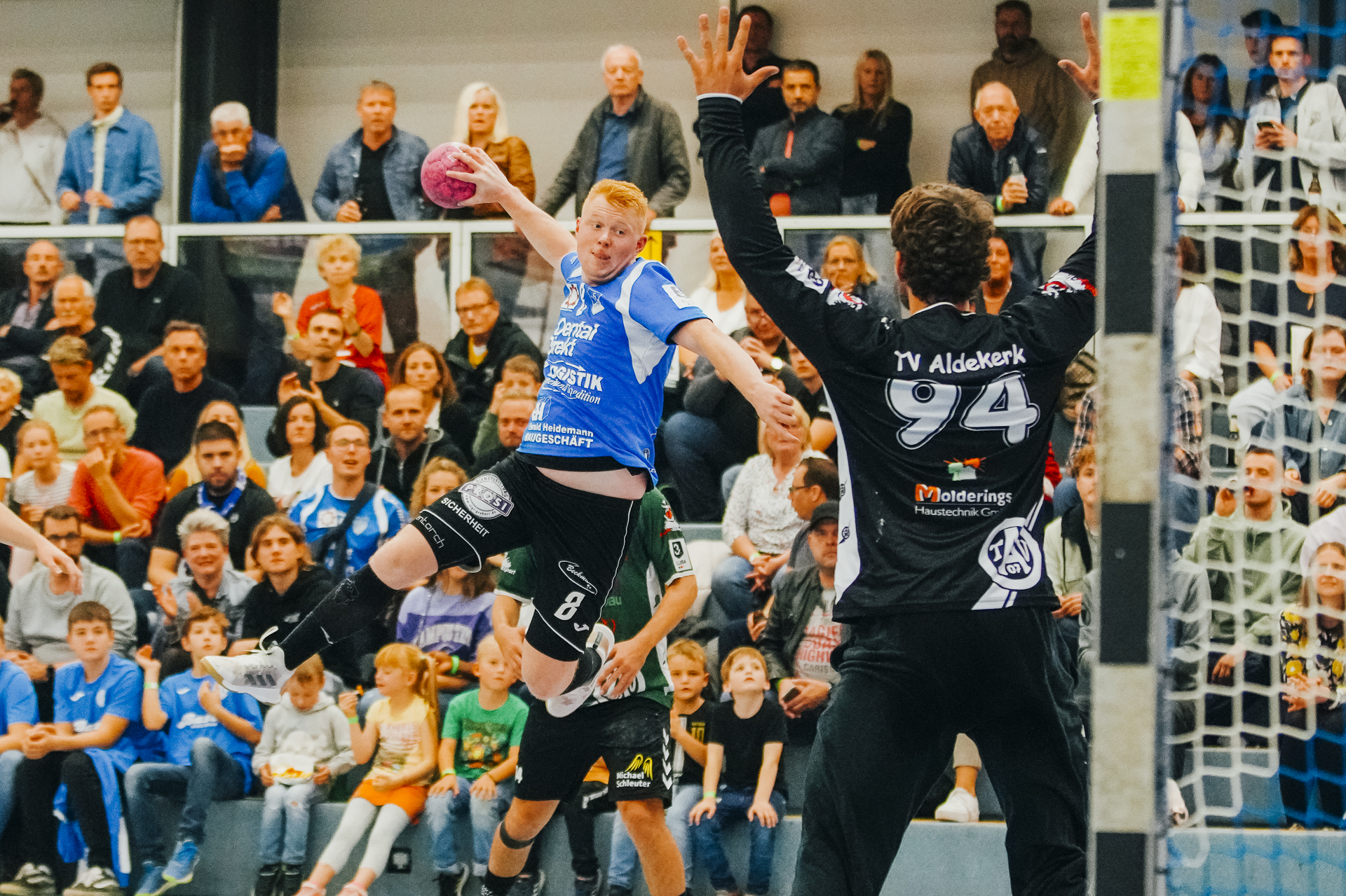 Endlich wieder ein Heimspiel – die Vorfreude war groß. Besonders, weil unsere Sieben in der letzten Woche in Longerich einen überzeugenden Auswärtssieg landete. Um es gleich vorweg zu nehmen, die Leistung der Vorwoche konnte unser Team nicht wiederholen. Am Ende siegt der TuS zwar mit 27:23 (8:10) einen Arbeitssieg – aber der Weg zu diesem Erfolg war an diesem Abend sehr steinig. Von Anfang an leistete sich unser Team eine Menge technischer Fehler und ließ gleich reihenweise beste Chancen aus. Hätten sich die Gäste aus Aldekerk nicht ähnlich viele Fehler geleistet, dann hätte der 4:3 Spielstand zur 14. Minute auch völlig anders aussehen können. Insgesamt fielen in den ersten 23 Minuten beim Stand von 7:7 nur ganze 14 Tore. Bis zur Halbzeit ergab sich nur eine magere 8:10 Führung für die Gäste – die Zuschauer in der Spenger Sporthalle hatten bis dahin keine gute Drittliga-Partie gesehen.