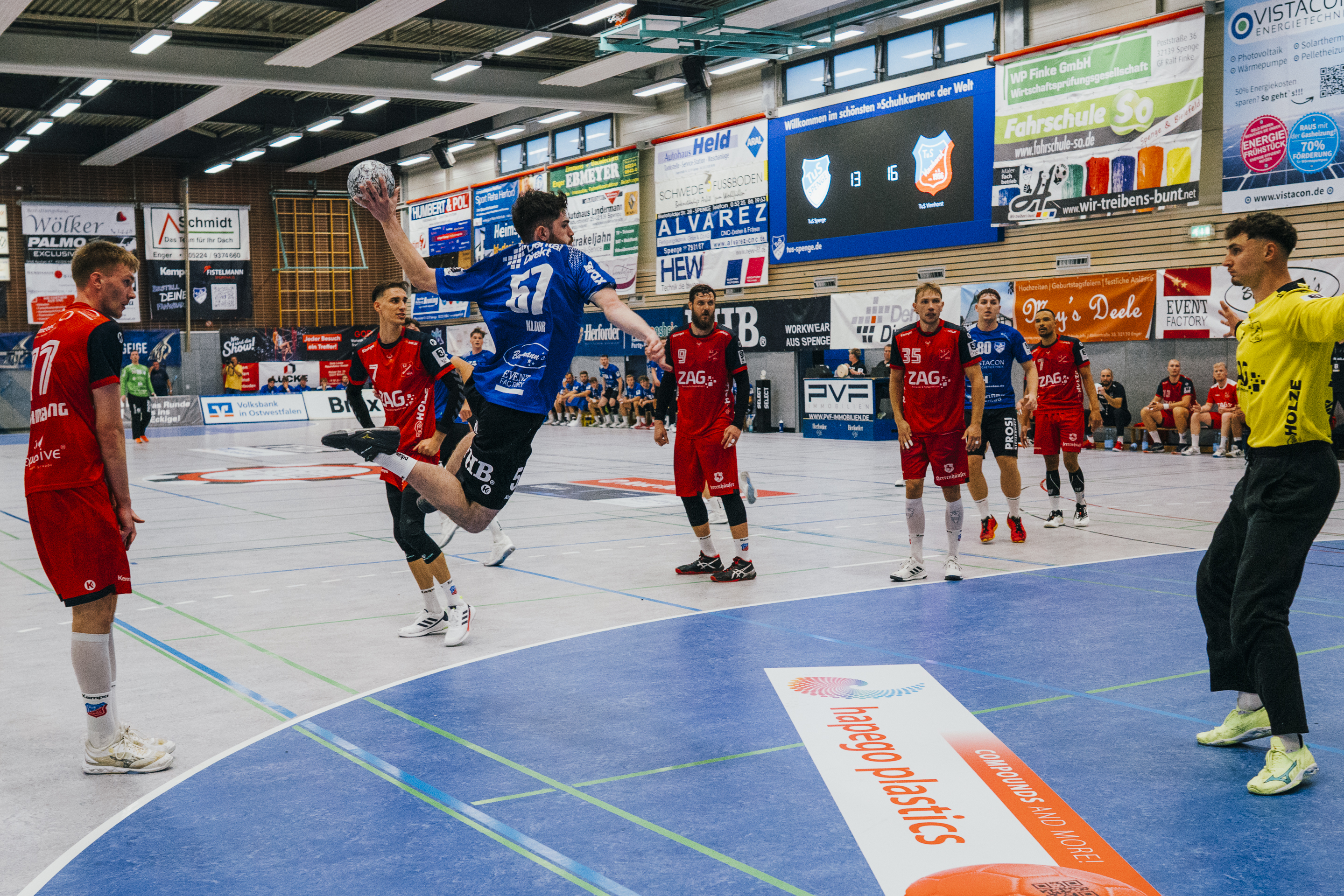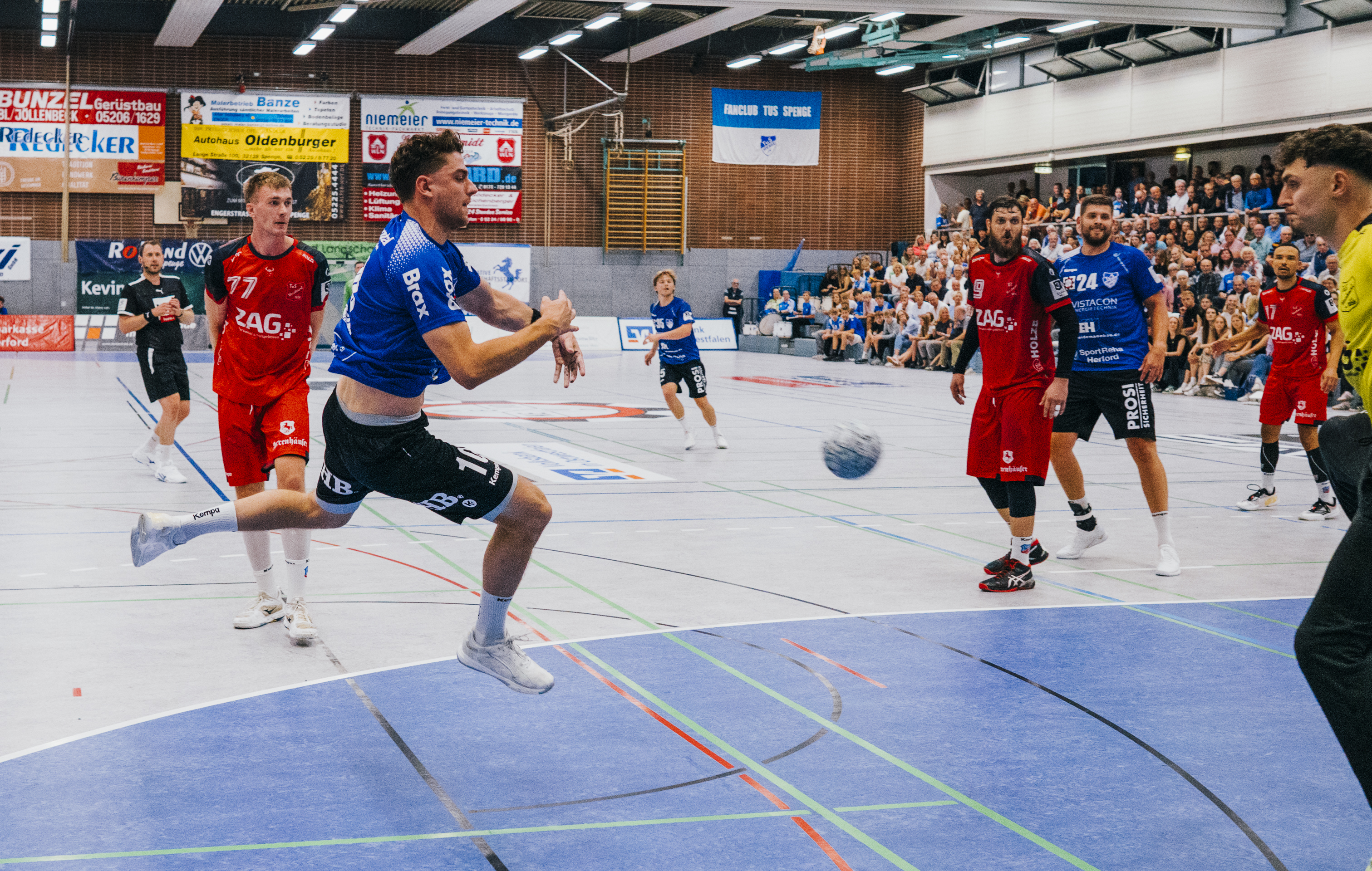 Das erste Heimspiel der neuen Saison im „schönsten Schuhkarton der Welt“ war gleich ein echtes Highlight. Rund 600 Zuschauer verwandelten das Sportzentrum Spenge in einen stimmungsvollen Hexenkessel und sahen ein intensives Handballspiel, das am Ende mit 31:36 (16:19) an den TuS Vinnhorst ging. TuS-Keeper Bastian Rutschmann fehlte verletzungsbedingt mit einem gebrochenen Finger, doch Mika Brokmeier sprang stark ein und glänzte mit zahlreichen Paraden – die Fans feierten ihn sogar lautstark mit Sprechchören. Auf der Gegenseite drehte vor allem Finn Hermeling auf, der mit beeindruckenden 13 Treffern bester Torschütze der Partie war. Bester Spenger Werfer war Bjarne Schulz, der sechs Mal erfolgreich war.