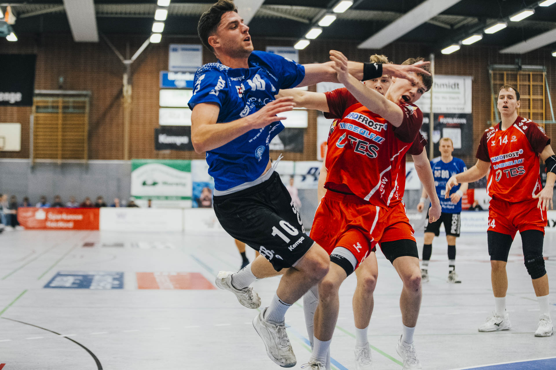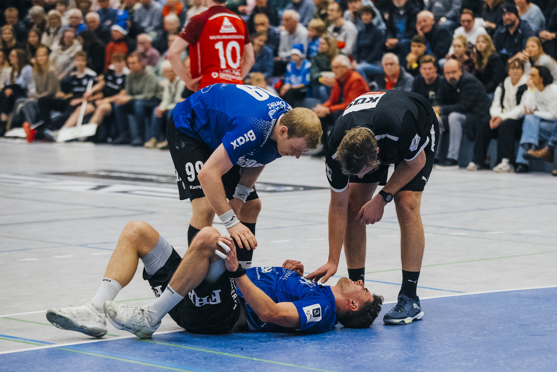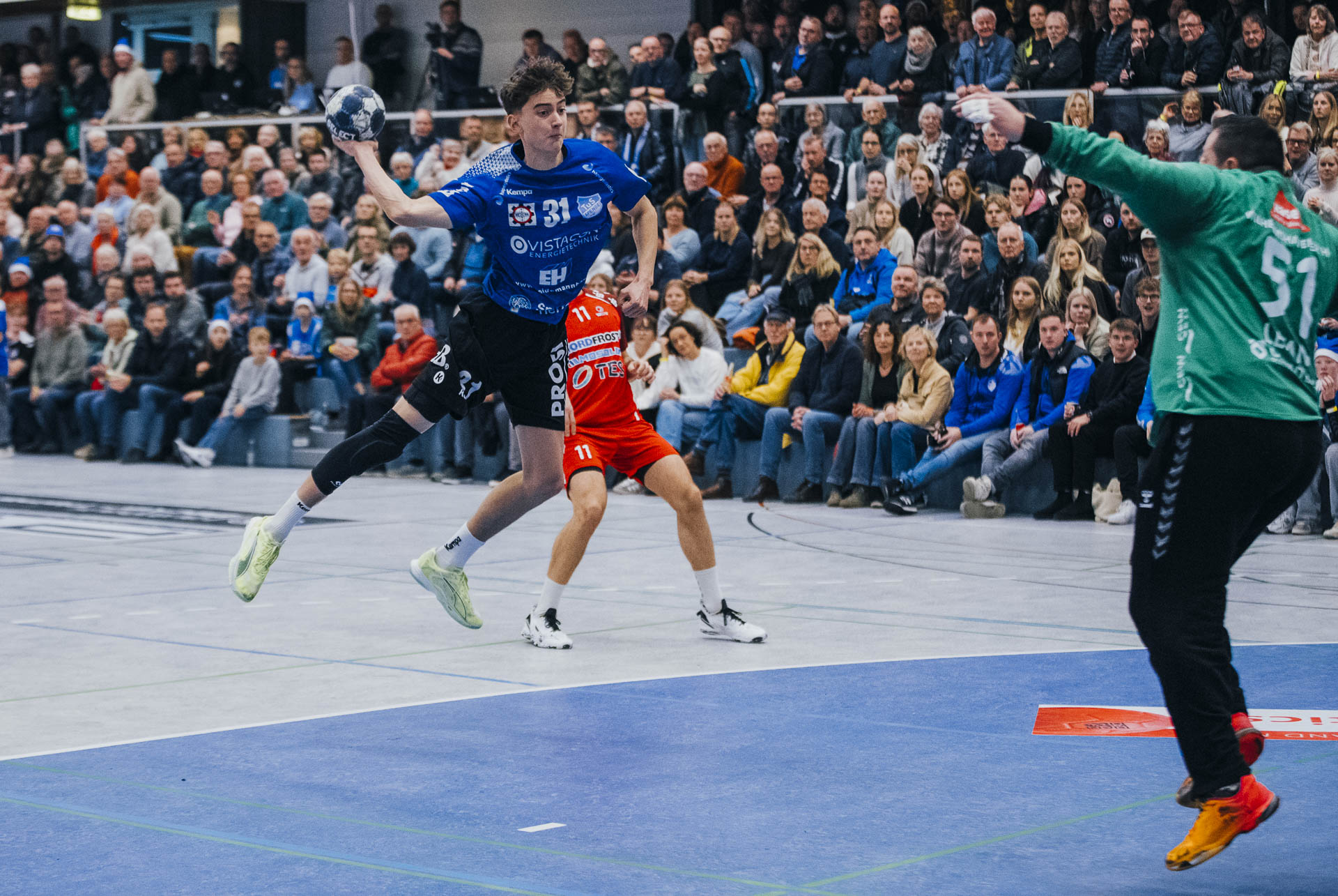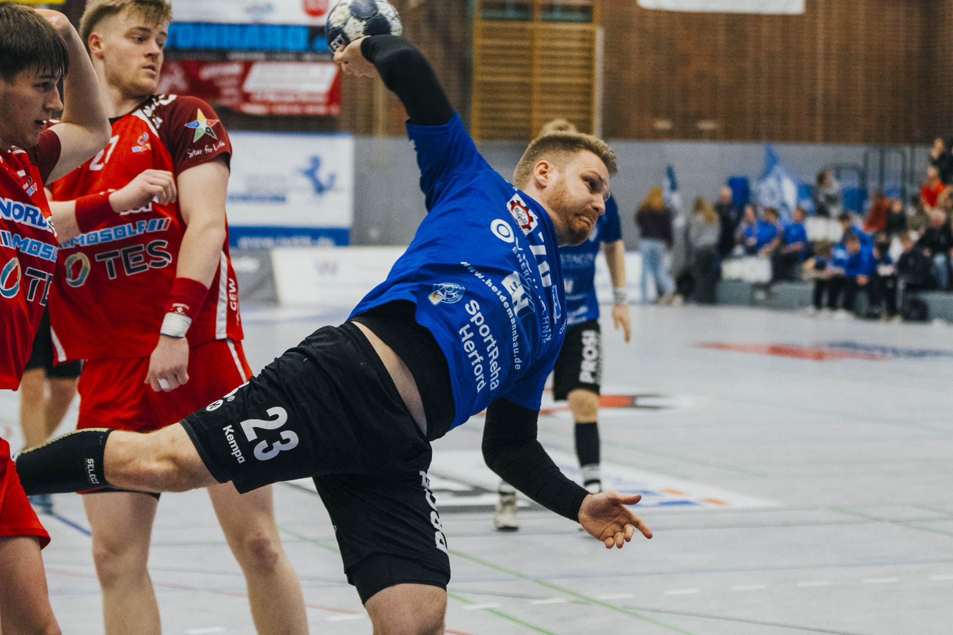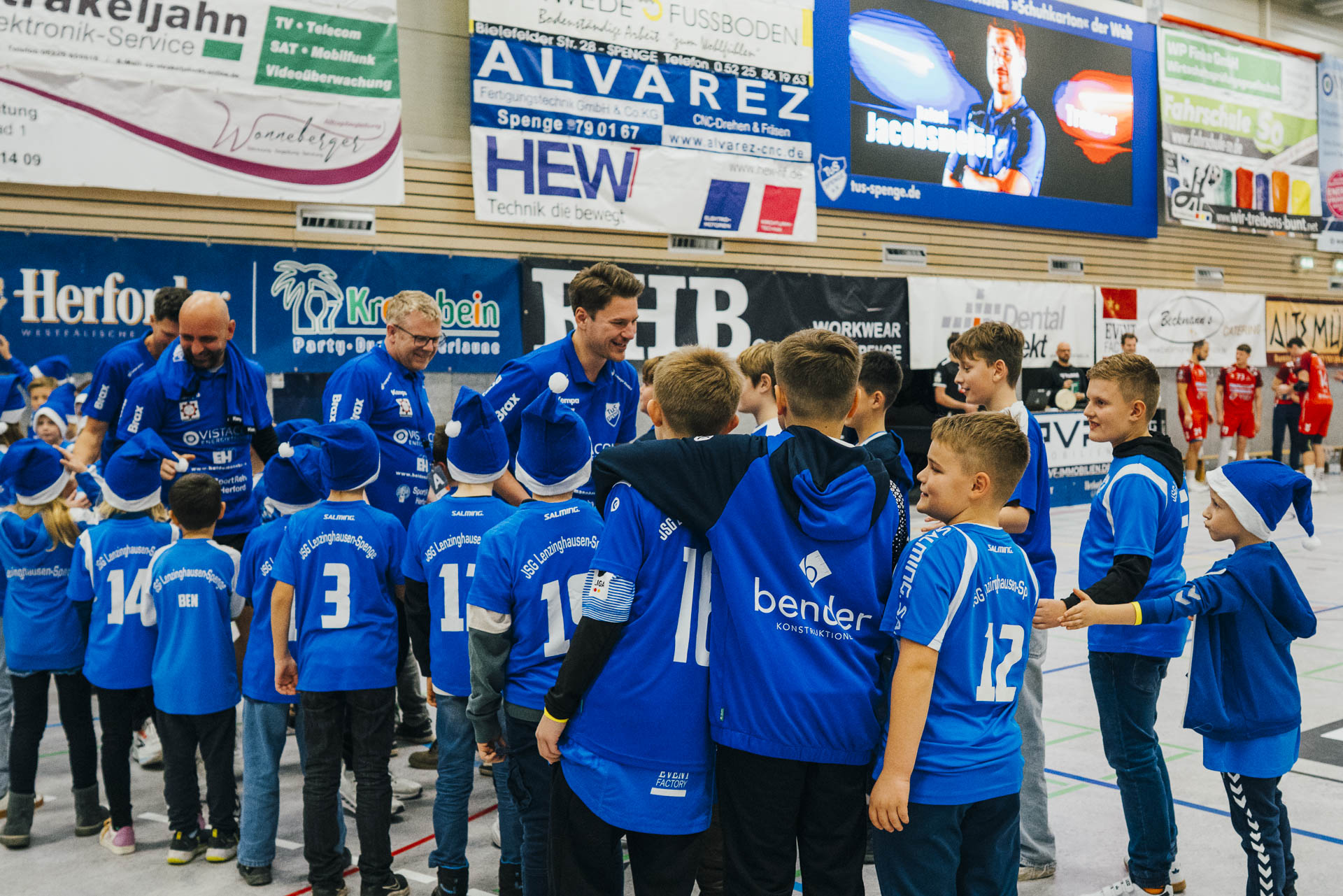 2. Halbzeit: Nach dem Seitenwechsel gestaltete sich das Spiel zunächst ausgeglichen. Fabian Breuer traf zweimal für den TuS Spenge, während Jakub Tóth auf Seiten des Wilhelmshavener HV ebenfalls doppelt erfolgreich war. In der 35. Minute war der Spenger Vorsprung jedoch auf fünf Tore geschmolzen, woraufhin der TuS eine Auszeit nahm. Eine sofortige Wirkung blieb jedoch aus, ohne dass der WHV entscheidend näher herankam. Beim Stand von 24:20 in der 43. Minute schien bei den Gästen kurzzeitig Hoffnung aufzukommen. Doch nun wurde die Deckung des TuS wieder deutlich stabiler, agierte aggressiver und ließ kaum noch klare Abschlüsse zu. Gleichzeitig erhöhte Spenge im Angriff das Tempo und nutzte Ballgewinne konsequent für schnelle Tore. In der Schlussphase rollte der TuS-Express erneut. Moritz Wilhelm stellte in der 53. Minute mit dem Treffer zum 31:24 die Weichen endgültig auf Sieg. Der Wilhelmshavener HV hatte dem nun nichts mehr entgegenzusetzen. Für einen emotionalen Höhepunkt sorgte Nick Heinsohn, der in der 58. Minute bei seinem Abschiedsspiel selbst noch zum 36:27 traf. Den Schlusspunkt setzte schließlich Theodor Theuteberg, der mit dem Treffer zum 38:27 das letzte Tor des Jahres im schönsten Schuhkarton von Spenge erzielte.