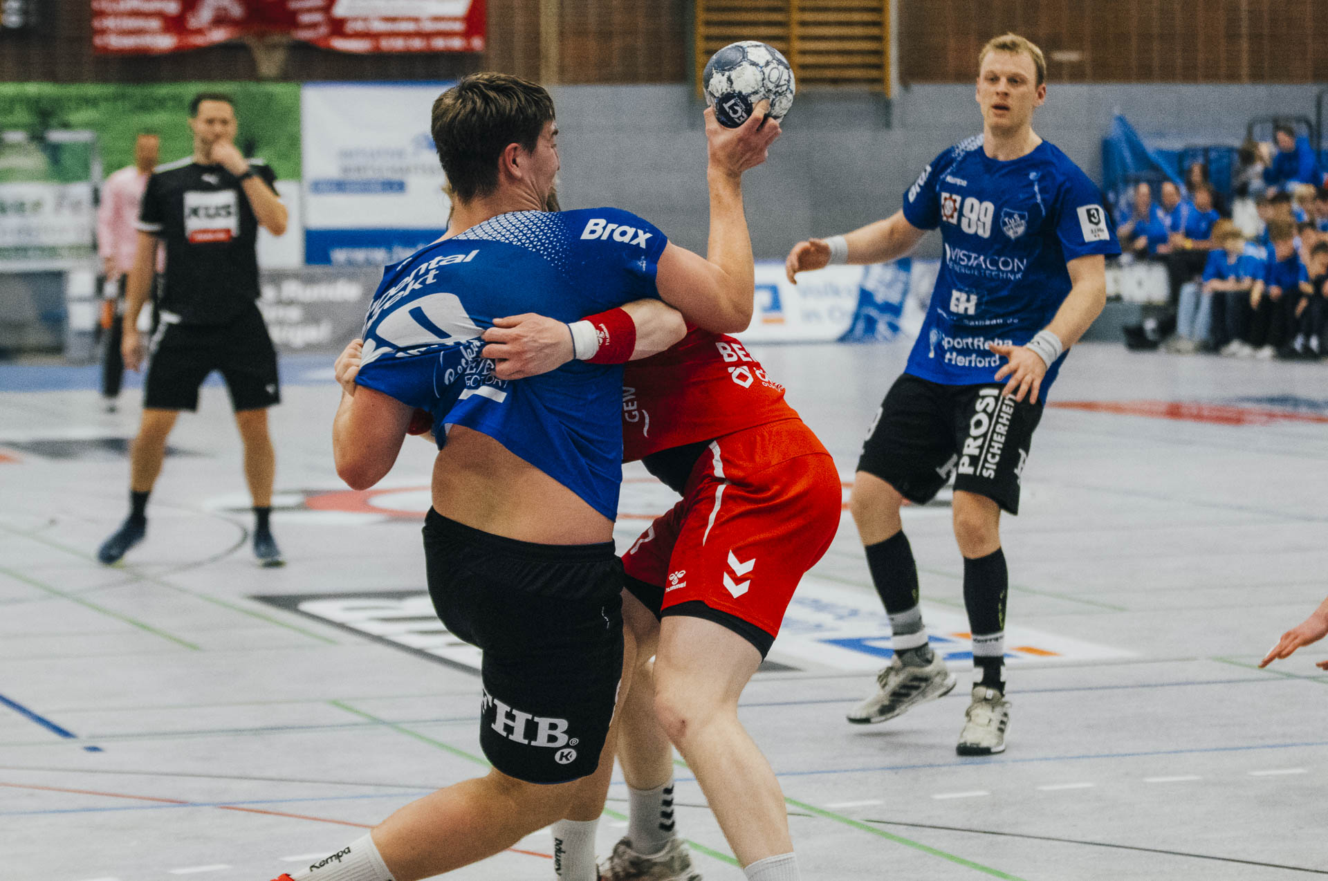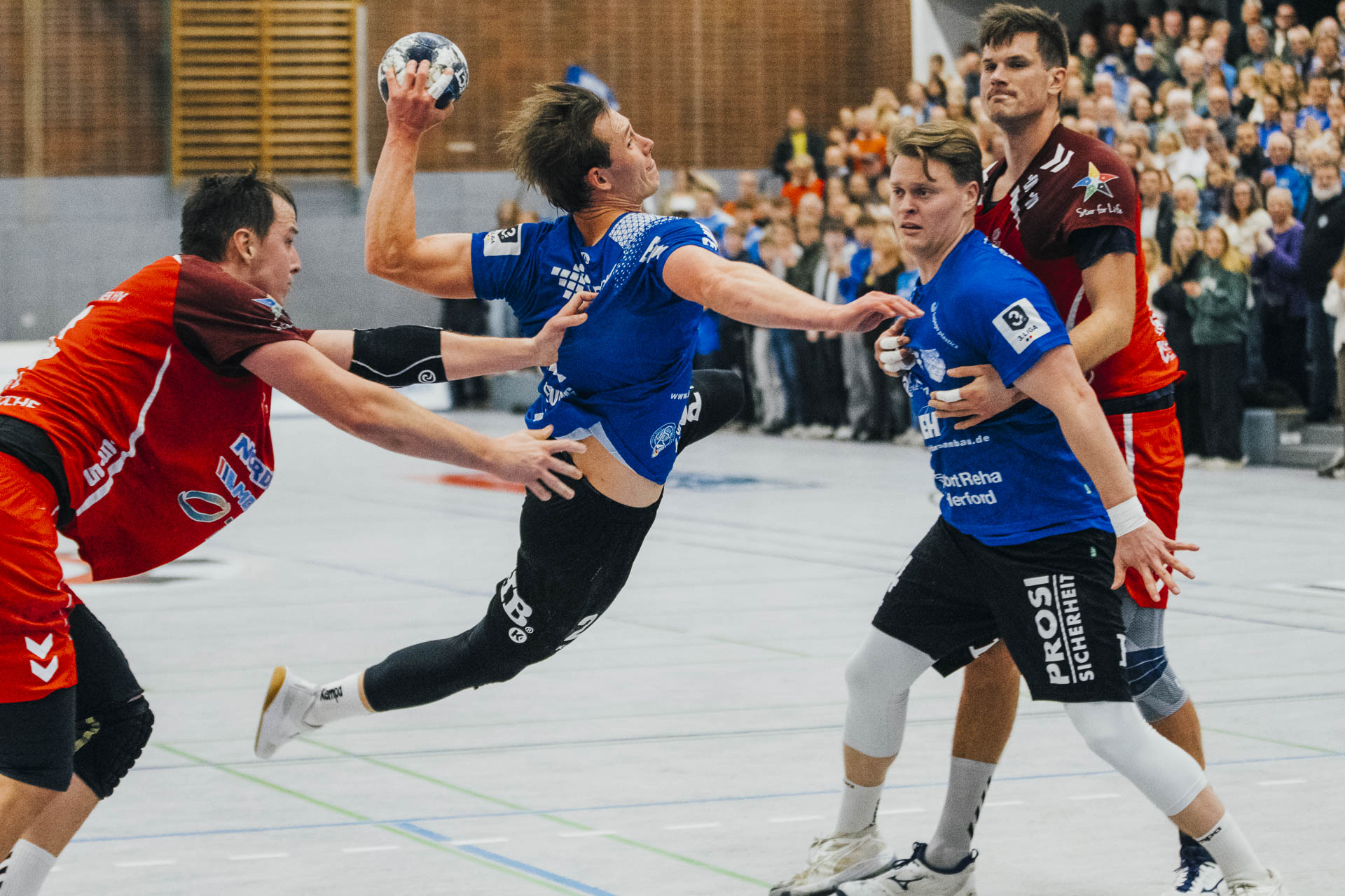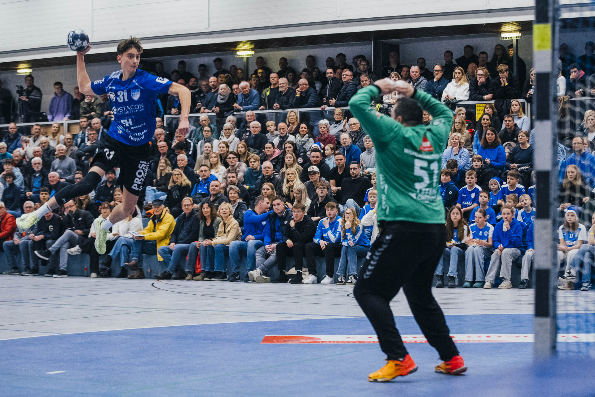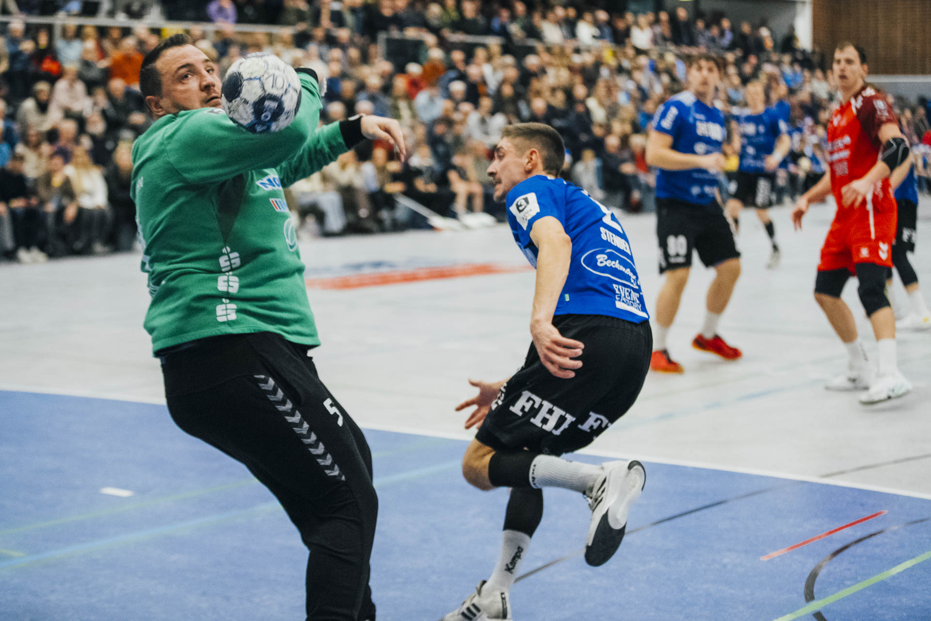 1. Halbzeit: Der TuS Spenge erwischte einen idealen Start in die Partie. Gordon Gräfe eröffnete den Torreigen und setzte damit früh das Signal, wohin die Reise gehen sollte. Bereits nach drei Minuten stand es 4:0 für die Hausherren – ein Auftakt nach Maß, der den Wilhelmshavener HV zu einer frühen Auszeit zwang. Der WHV leistete sich in dieser Phase zahlreiche technische Fehler, die der TuS Spenge konsequent nutzte und über schnelle Tempogegenstöße in einfache Tore ummünzte. Zudem war auf Mika Brokmeier im TuS-Tor einmal mehr Verlass, der mit starken Paraden den Gästen früh den Wind aus den Segeln nahm. Auch in der Folge blieb Spenge tonangebend. Nach zehn Minuten erhöhte Marvin Stender mit seinem Treffer auf 9:2 und unterstrich die Dominanz der Gastgeber. Erst im weiteren Verlauf der ersten Hälfte gelang es dem WHV, sich etwas zu stabilisieren – vor allem dank zahlreicher starker Paraden von Torhüter Jakub Lefan. So betrug der Vorsprung nach 20 Minuten „nur“ noch fünf Tore, obwohl der TuS spielerisch klar überlegen blieb. Mit einer verdienten 17:9-Führung ging es schließlich in die Pause, wobei der Abstand durchaus hätte höher ausfallen können.