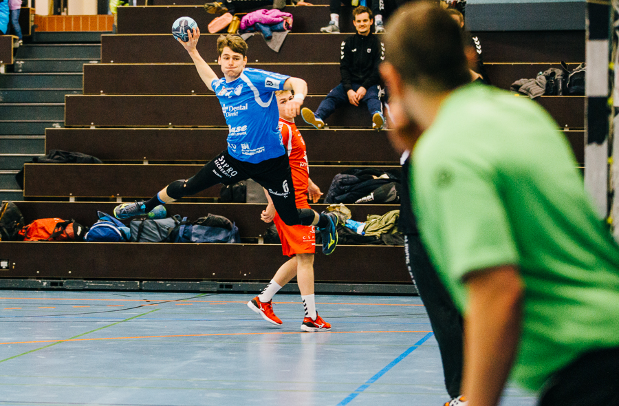Im zweiten Spiel des Tages stand dem TuS mit der HSG EGB II erneut ein Kreisligateam gegenüber. Auch diese Begegnung dominierte von Anfang an der TuS und führte standesgemäß nach fünf Minuten mit 4:0. Danach gelang der HSG durch einen Siebenmeter der vielumjubelte erster Treffer der Partie. Danach zog der TuS jedoch weiterhin sein Tempogegenstoß-Spiel auf und zog uneinholbar davon.